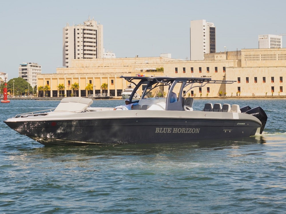 La Lancha BLUE HORIZON es una de nuestras embarcaciones más exclusivas, diseñada para brindar una experiencia náutica superior. Su diseño moderno, su potencia y sus acabados de lujo la convierten en una de las mejores opciones para recorrer las Islas del Rosario y más allá.