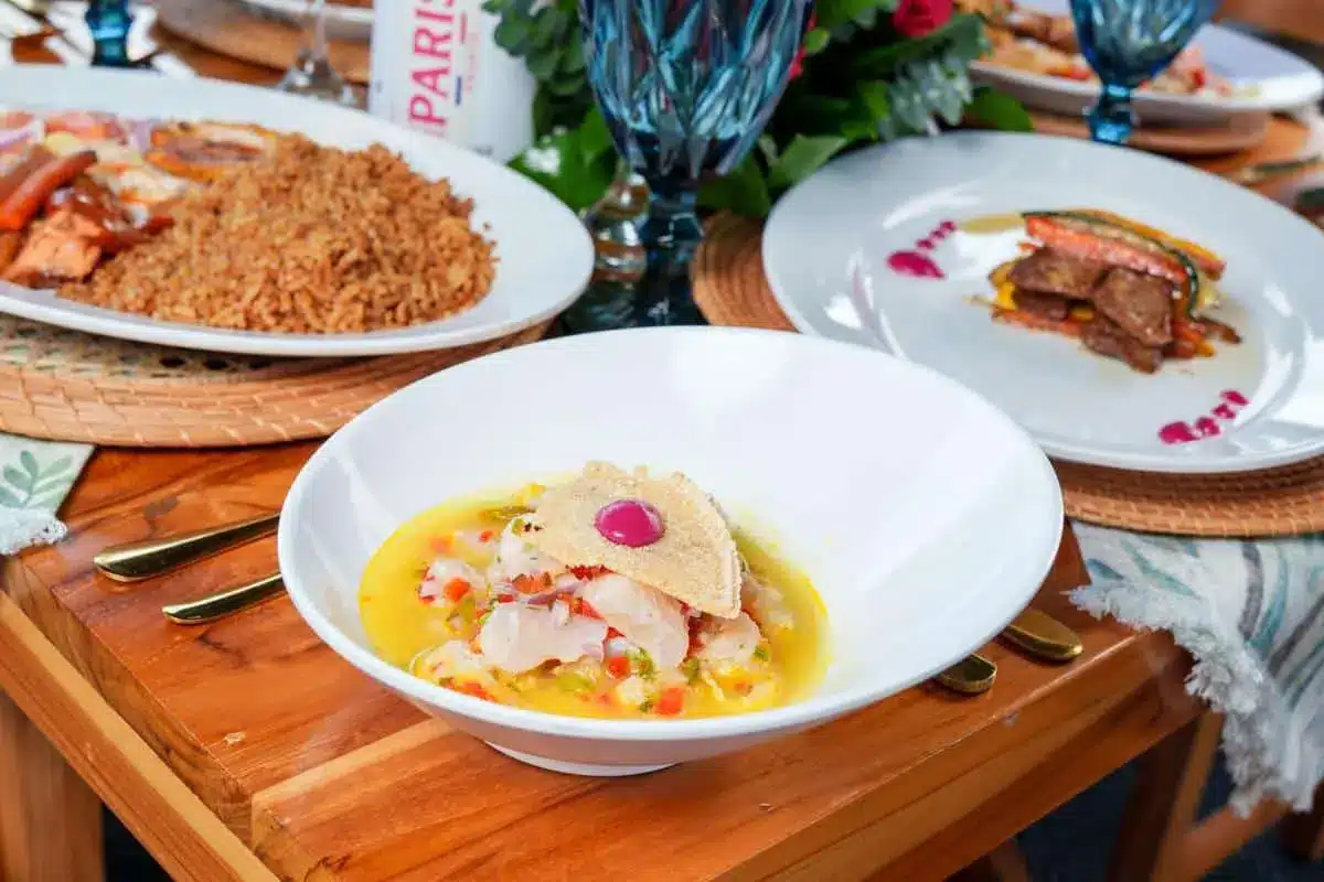 Todos los platos se sirven acompañados de ensalada fresca, arroz de coco y patacón.